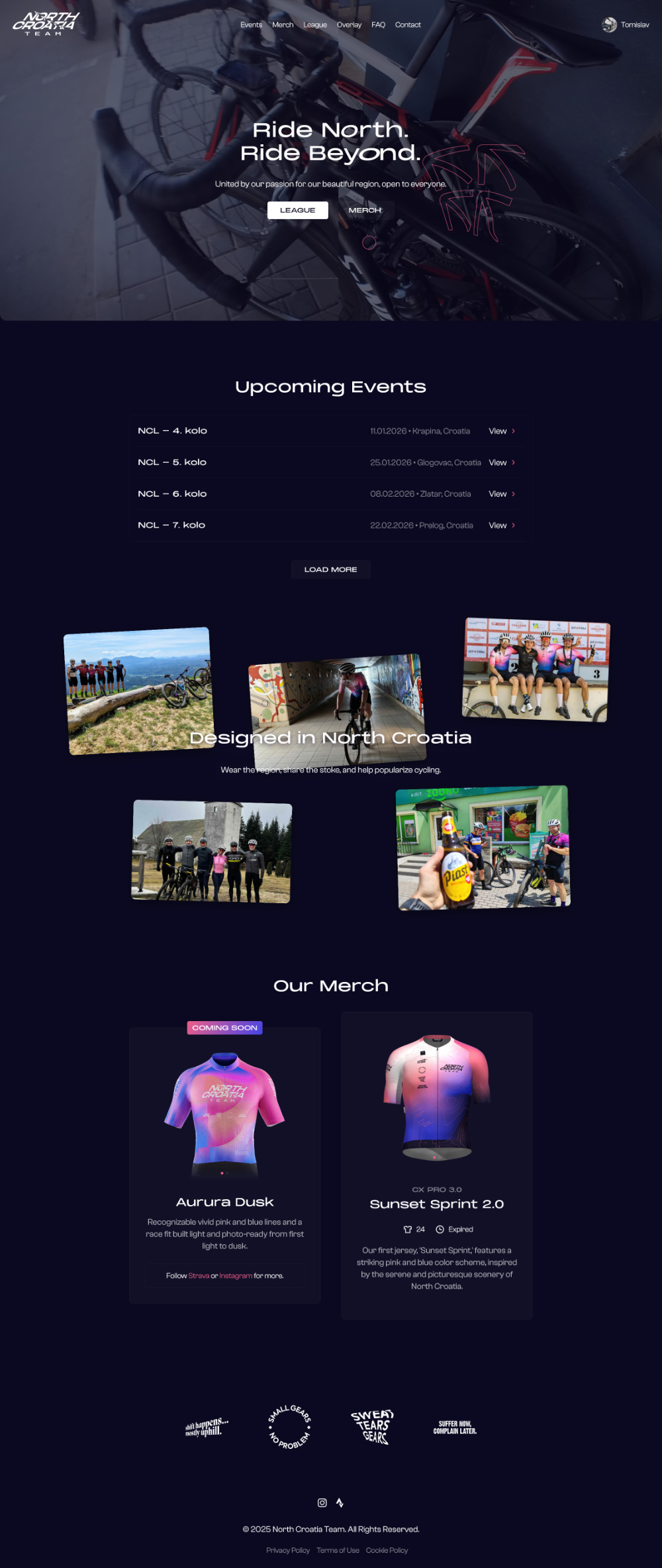 A custom-built platform for a regional cycling league, combining Strava-powered race tracking, performance overlays, event management, merchandise integration, and Instagram-first content production into one cohesive digital ecosystem.